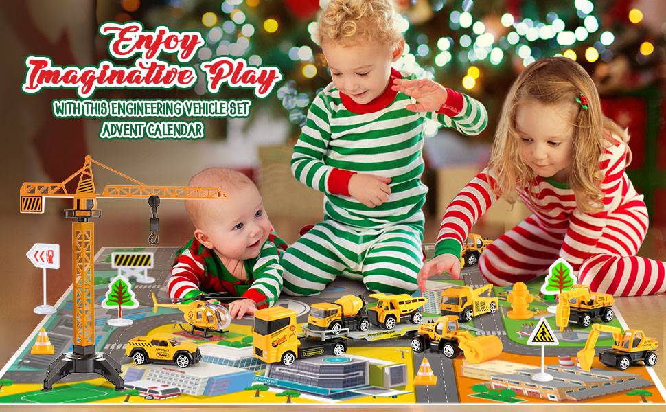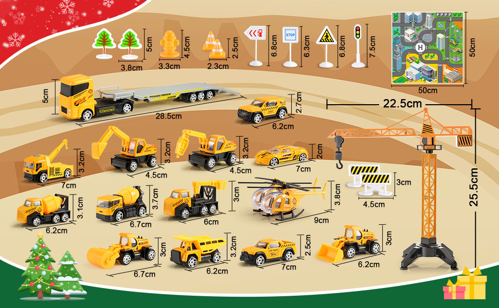🚗Fiúknak szóló adventi naptár: Ötvözött építőipari jármű játékok