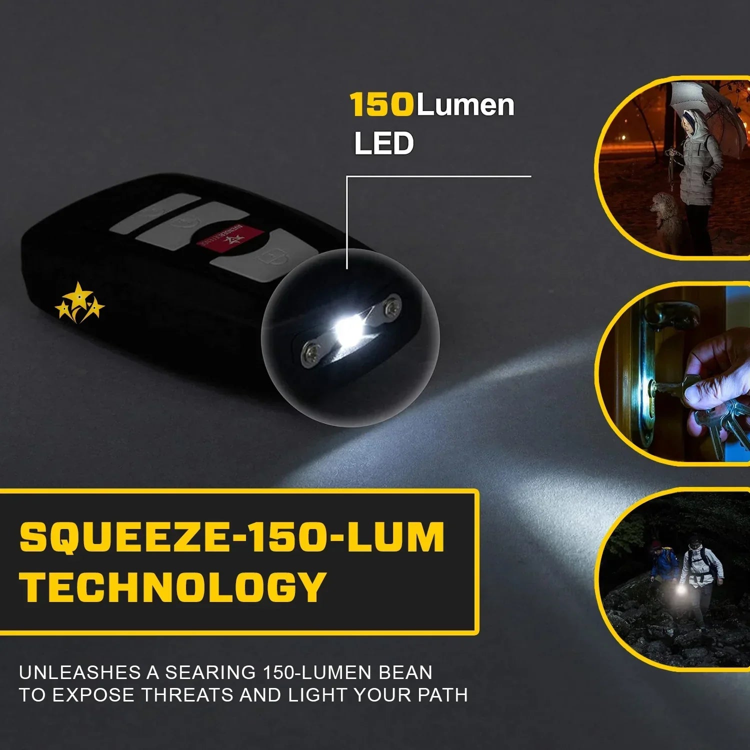 A beépített taktikai zseblámpa vakító, 150 lumenes fényt bocsát ki, amely elég erős ahhoz, hogy megvilágítsa a sötét utcákat, sikátorokat, parkolókat, kempingeket, vagy akár az autója környékét is, mielőtt beszállna. Ez a tökéletes mindennapi eszköz az éjszakai biztonsághoz, amely lehetővé teszi, hogy tisztán lásson és gyorsan reagáljon – még mielőtt a veszély közeledne.