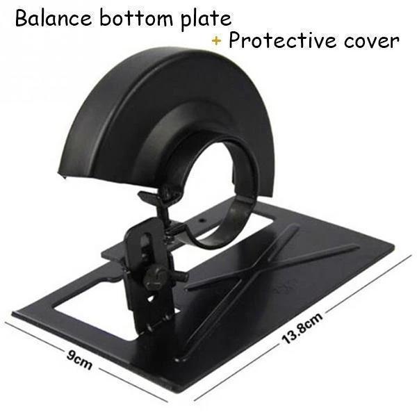 A sarokcsiszoló átalakító szerszámkészlet állvánnyal és védőburkolattal. A védőburkolat megvéd a sérülésektől a famegmunkálás során.