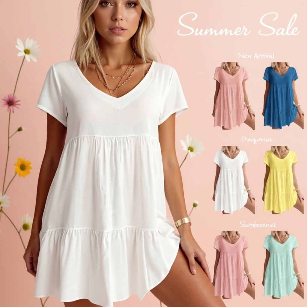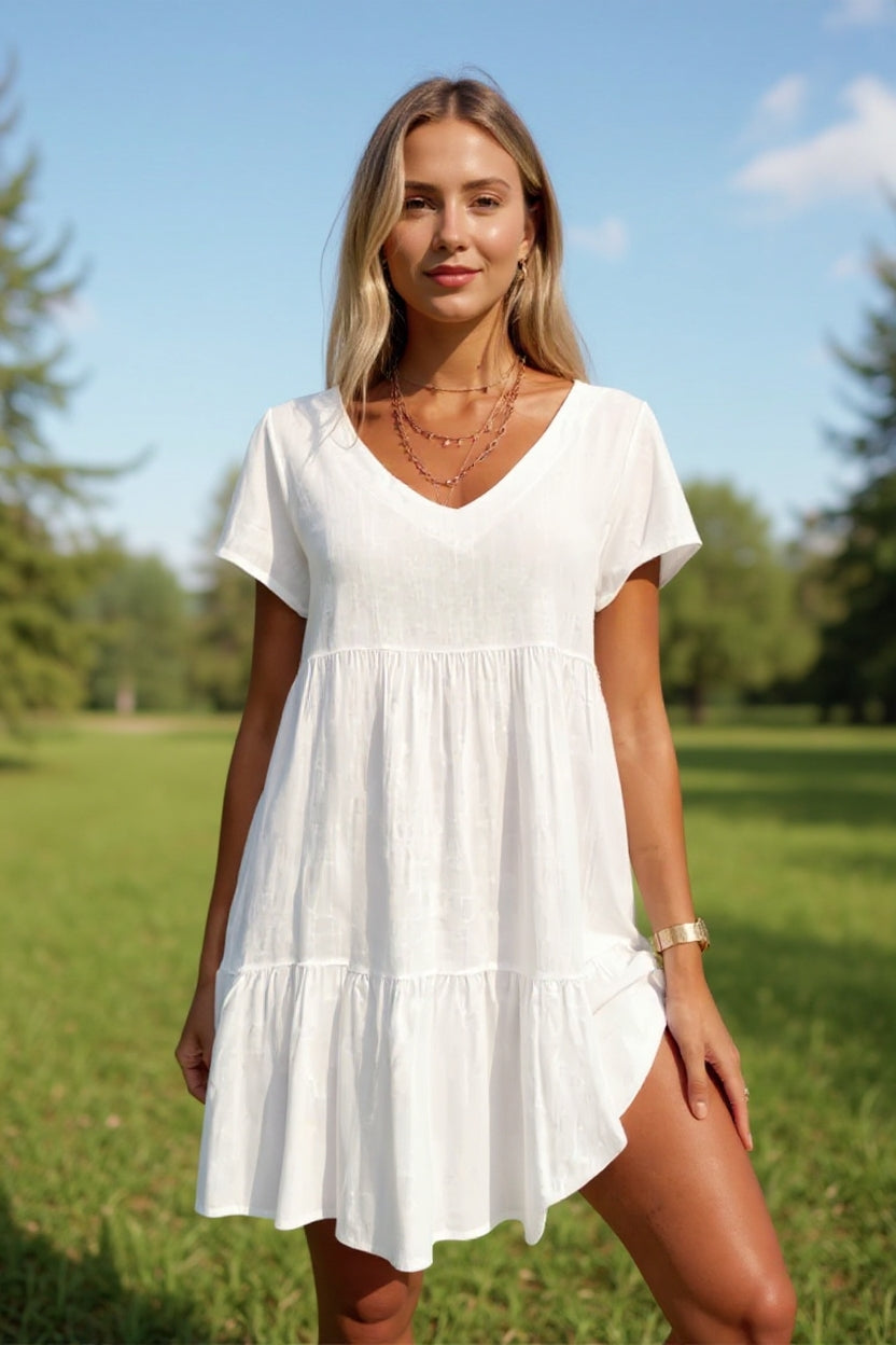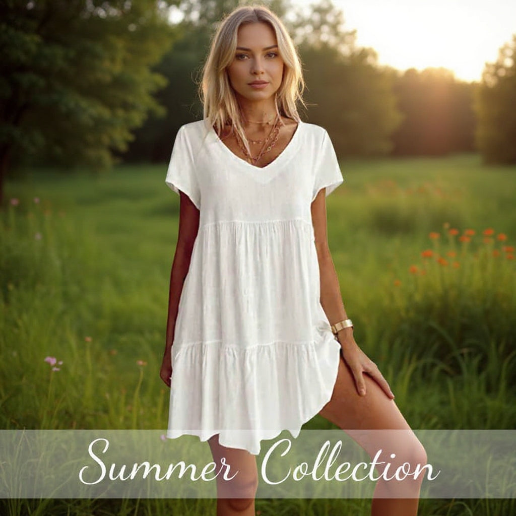 Ez a puha anyagból készült tunika sima, kiváló minőségű, könnyű és légies. A laza gyűrött szegély bármilyen testalkathoz illik, alkalmi ruhaként vagy tunikaként is használható, a legjobb választás ünnepekre!